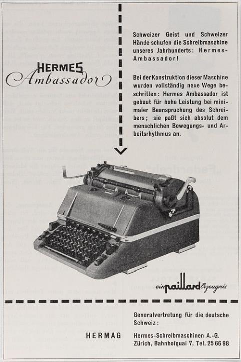 Werbeanzeige für Schreibmaschine Hermes monochrom