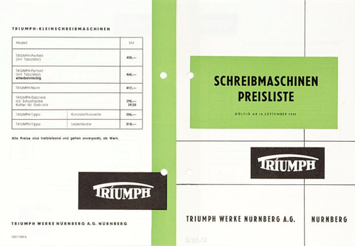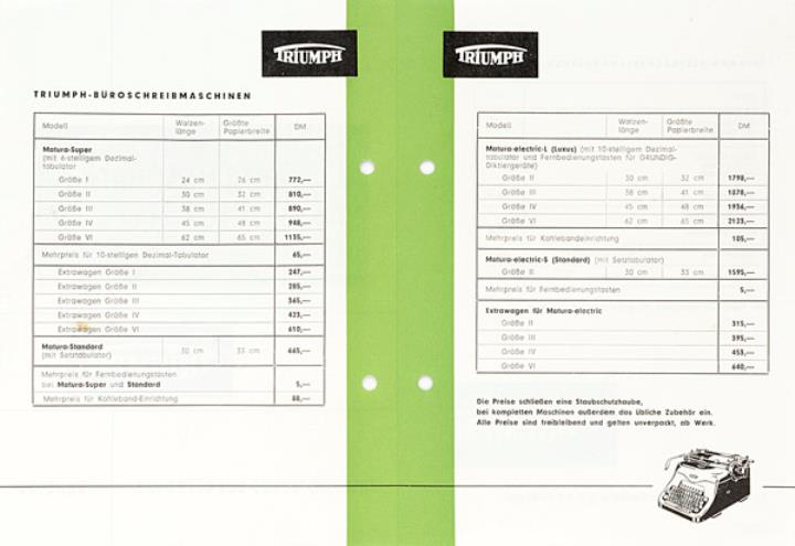Triumph Schreibmaschinen Preisliste