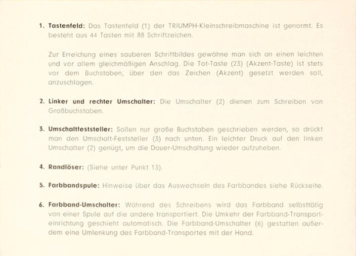 Bedienungsanleitung für Schreibmaschine Triumph Gabriele Nr. 1247-557/D
