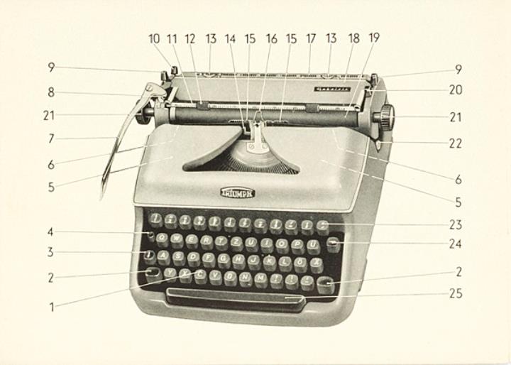 Next to literature on the history of technology, of the typewriter and the office, the Archive holds patent letters, textbooks and instruction manuals as well as historical postcards, letters, photographs and various kinds of advertising (leaflets and brochures, advertising stamps, newspaper ads, posters and signs, promotional gifts).