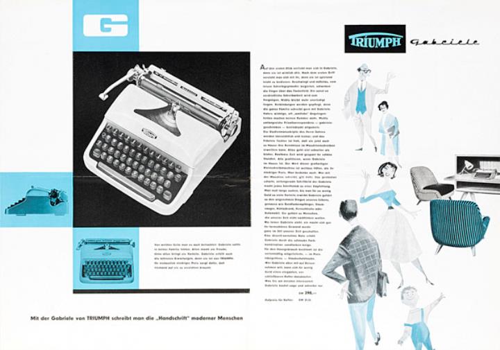 Faltprospekt für Schreibmaschine Triumph Gabriele Nr. 1243/657/pf. Grafik: Stöss