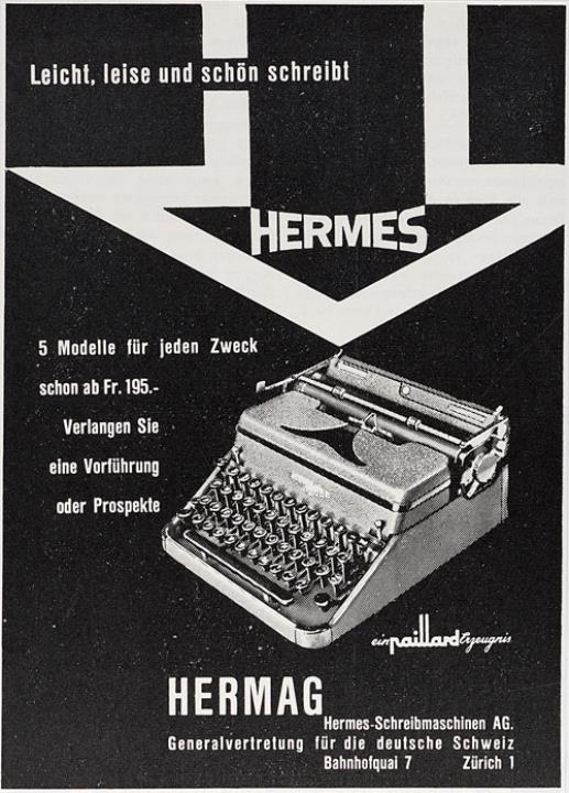 Werbeanzeige für Schreibmaschine Hermes monochrom