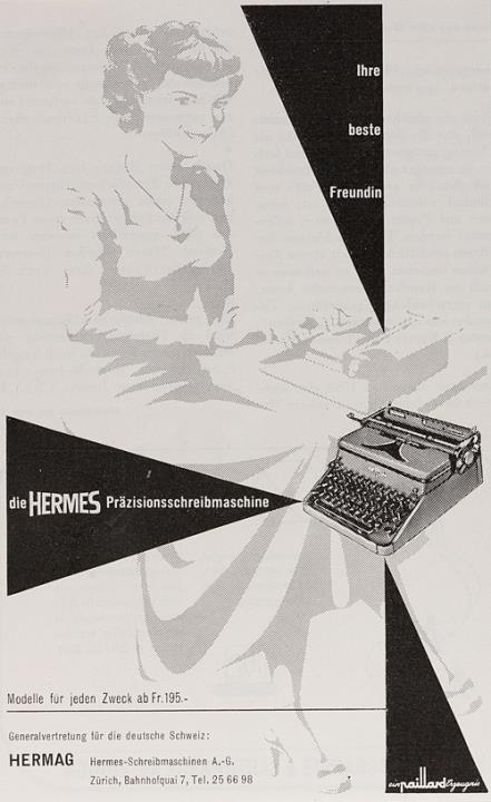 Werbeanzeige für Schreibmaschine Hermes monochrom