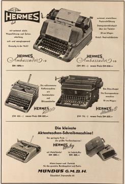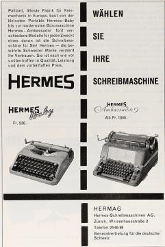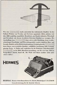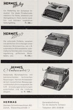Werbeanzeige für Schreibmaschinen Hermes monochrom