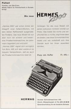 Werbeanzeige für Schreibmaschine Hermes 2000 monochrom