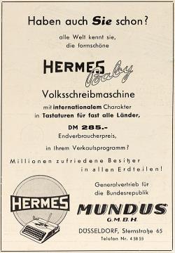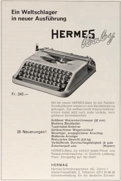 Werbeanzeige für Schreibmaschine Hermes Baby monochrom