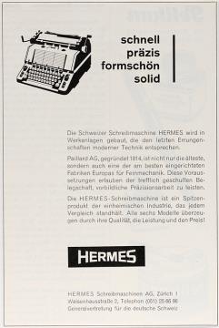 Werbeanzeige für Schreibmaschine Hermes monochrom