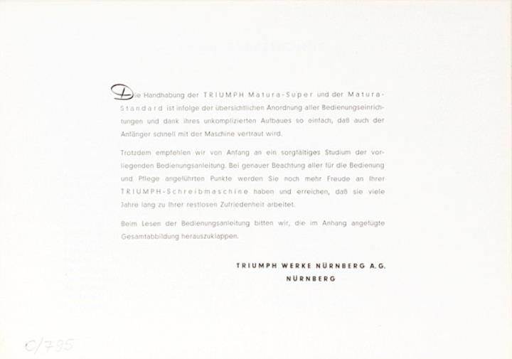 Bedienungsanleitung für Schreibmaschine Triumph Matura Nr. 1284/1158/4