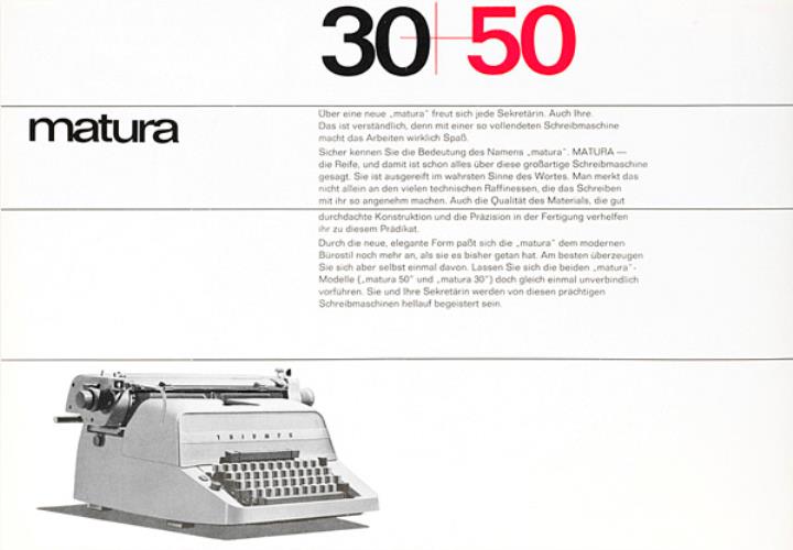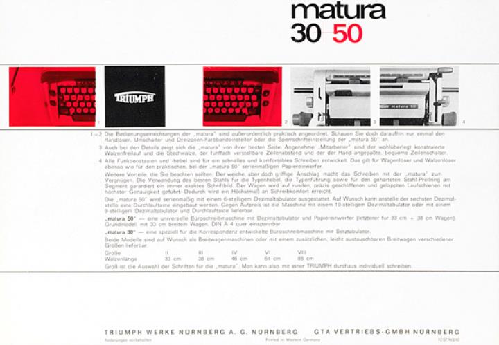 Faltprospekt für Schreibmaschine Triumph Matura 30, 50 Jetzt hab' auch ich meine "matura" (und gebe sie nicht mehr her!) Nr. 17/57/963/10