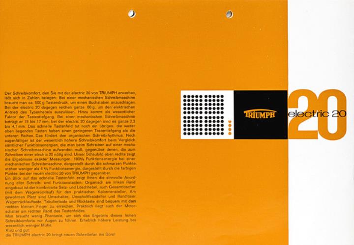 Prospekt für Schreibmaschine Triumph electric 20 Nr. 1569/561/4 Grafik: stöss + brecht
