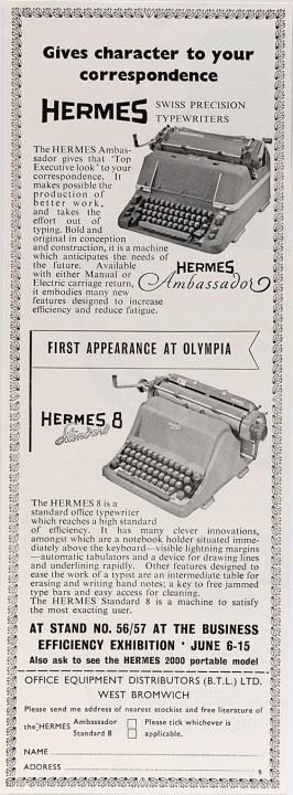 Werbeanzeige für Schreibmaschine Hermes monochrom