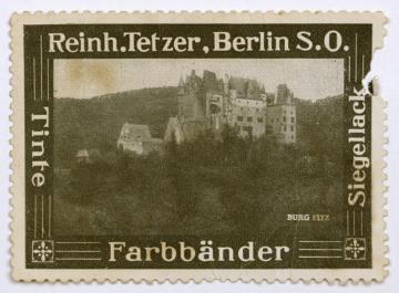 Reklamemarke/Werbemarke einer Serie (Bürobedarf Tetzer); rechteckig, monochrom Motiv: Ansicht Burg Eltz