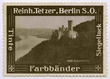 Reklamemarke/Werbemarke einer Serie (Bürobedarf Tetzer); rechteckig, monochrom Motiv: Ansicht Burg Stolzenfels