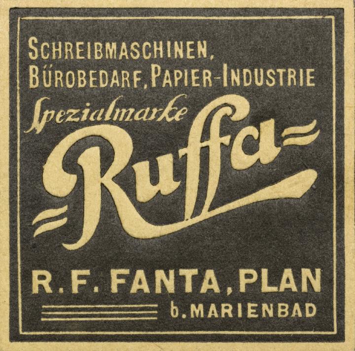 Siegelmarke für Bürowarenhandlung R.F. Fanta, Plan b. Marienbad rechteckig, monochrom