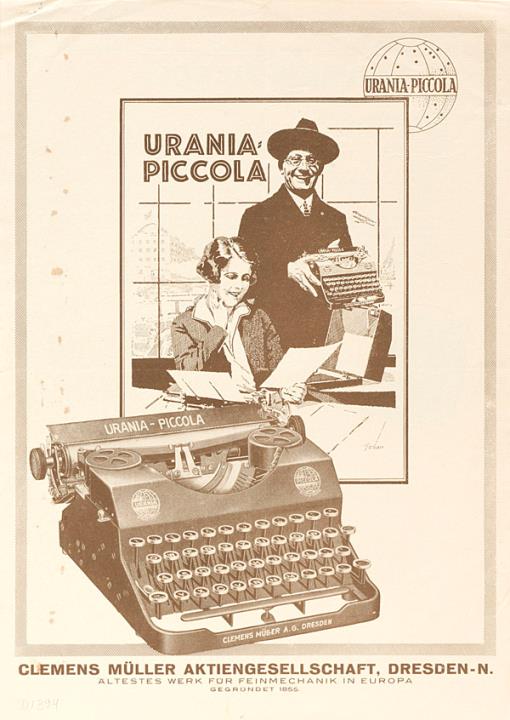 Prospekt für Schreibmaschine Urania Piccola Nr. 604