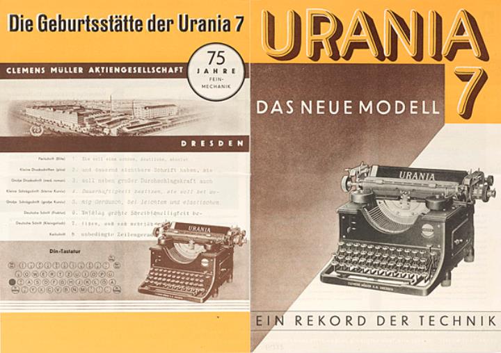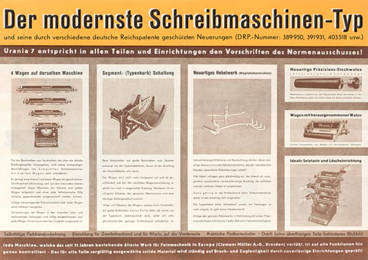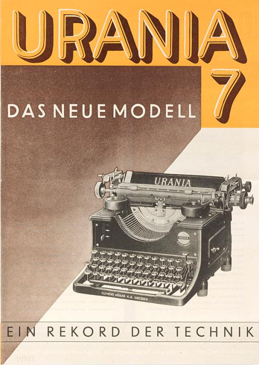 Faltprospekt für Schreibmaschine Urania 7 Ein Rekord der Technik