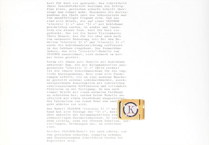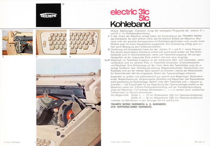 Faltprospekt für elektrische Schreibmaschine Triumph 31c, 51c Wort für Wort wie gedruckt Nr. 1790/464/40