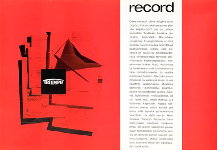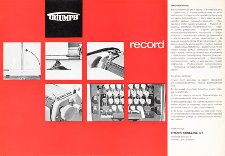 Faltprospekt in finnischer Sprache für Schreibmaschine Triumph Record