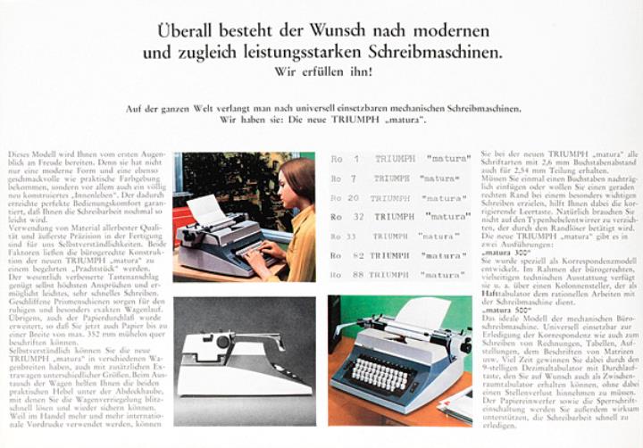 Faltprospekt für Schreibmaschine Triumph Matura 300, 500 Nr. 2177/469/40