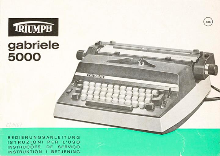 Bedienungsanleitung viersprachig für elektrische Schreibmaschine Triumph Gabriele 5000 Nr. 122/471/9 Beilage: Schreibkontrollblatt der Gabriele 5000 Nr. 639431