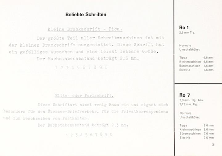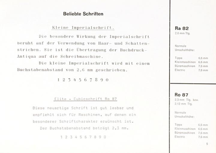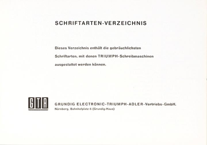 Schriftartenverzeichnis für Schreibmaschine Triumph Nr. 1531/464/6