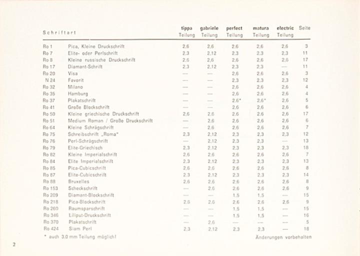 Schriftartenverzeichnis für Schreibmaschine Triumph Nr. 1531/464/6