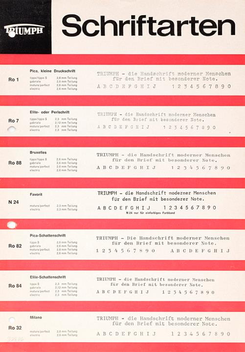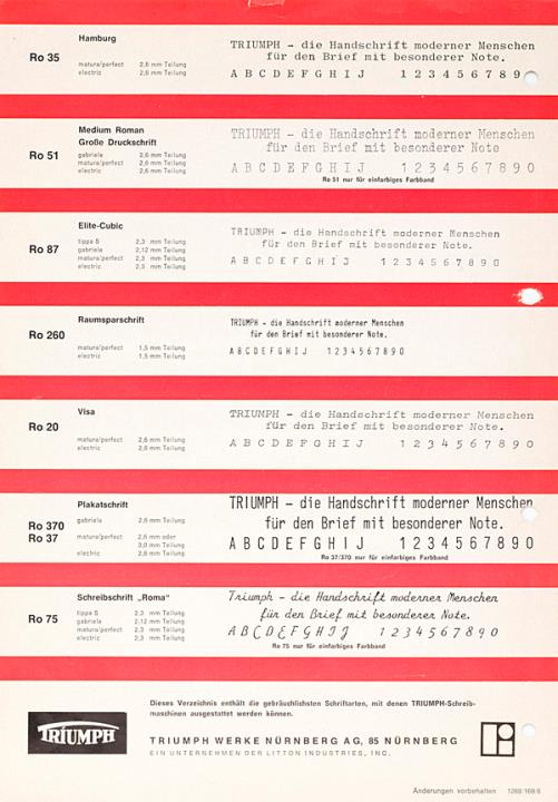 Schriftartenverzeichnis für Schreibmaschine Triumph Nr. 1288/169/6