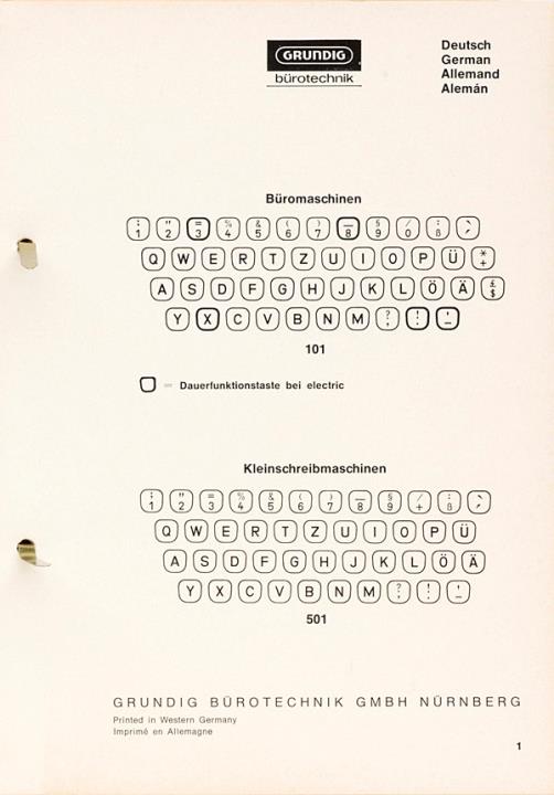 Schnellhefter mit Tastaturenverzeichnis viersprachig für Schreibmaschinen Grundig Nr. 000/767/6