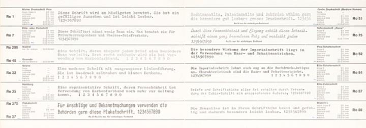 Schriftartenverzeichnis für Schreibmaschine Triumph Nr. 2241/574/6