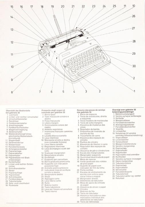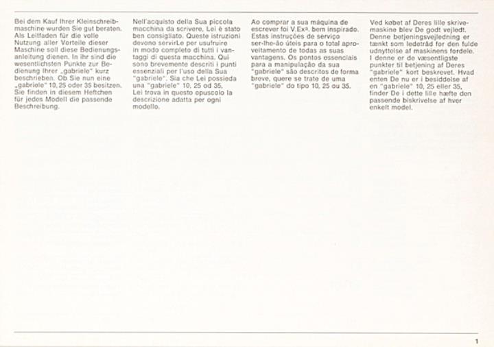 Bedienungsanleitung viersprachig für Schreibmaschine Triumph Gabriele 10, 25 und 35 Nr. 121/4/878/15