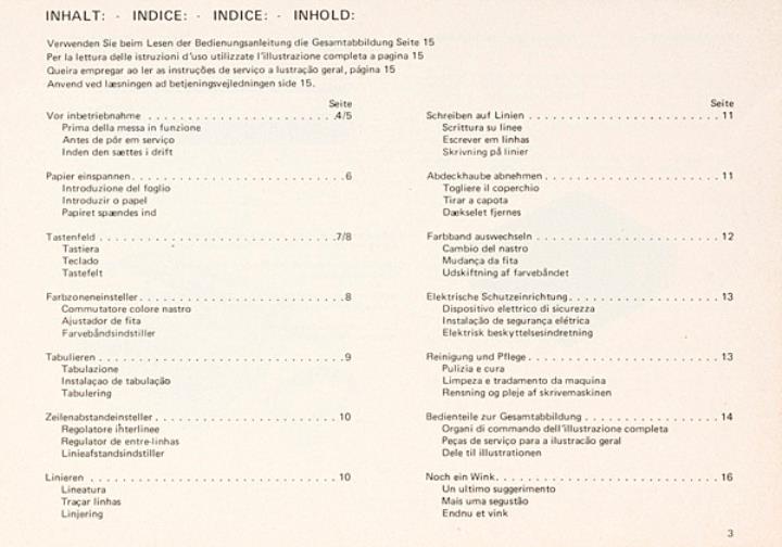 Bedienungsanleitung viersprachig für Schreibmaschine Triumph Gabriele 2000 Nr. 122/4/0680/N