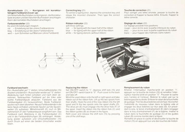 Bedienungsanleitung dreisprachig für Schreibmaschine Triumph-Adler Junior electric Nr. IT-19 Jahreszahl handschriftlich auf Anleitung vermerkt