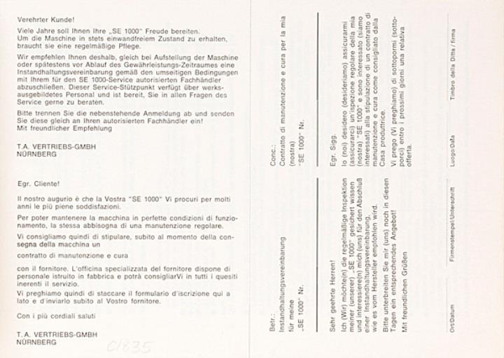 Bedienungsanleitung viersprachig für Schreibmaschine Triumph-Adler electric SE 1000 Nr. 132/17/177/6