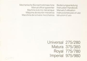 Bedienungsanleitung fünfsprachig für Schreibmaschine Triumph-Adler Universal 275/280, Matura 375/380, Royal 775/780 und Imperial 975/980 Nr. 131/8/0984/6