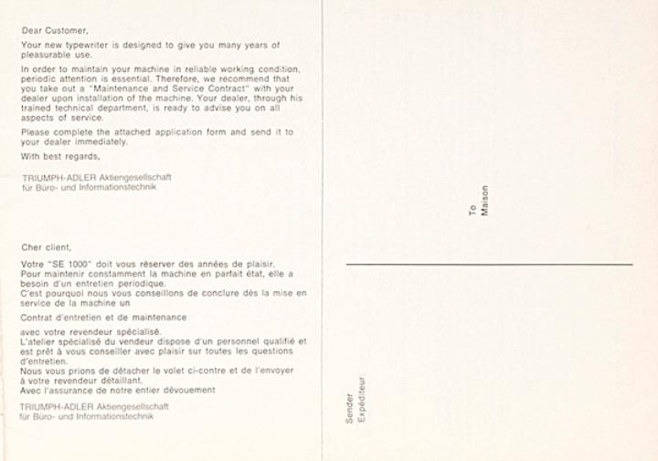 Bedienungsanleitung viersprachig für Schreibmaschine Triumph-Adler electric SE 1000 Nr. 132/21/1181/6