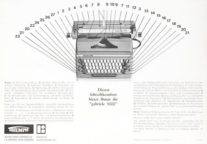 Faltprospekt für elektrische Schreibmaschine Triumph Gabriele 5000 Nr. 2173/869/6