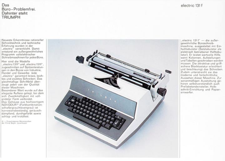Faltprospekt für Schreibmaschine Triumph electric 131d, 151d vollelektrische Büroschreibmaschine Nr. 2650/674/50./40