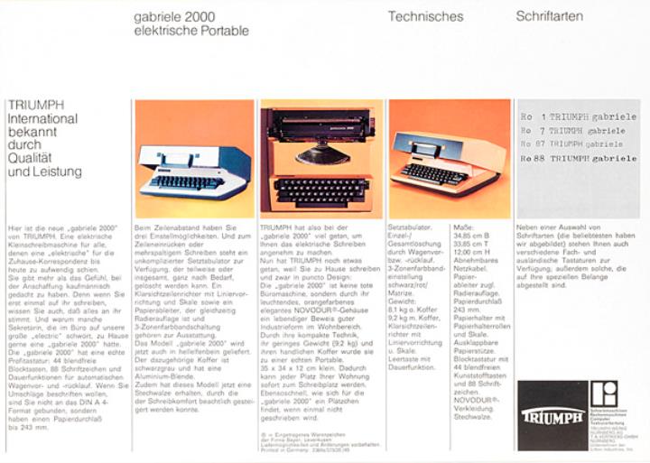 Prospekt für Schreibmaschine Triumph Gabriele 2000 Die elektrische Portable Nr. 2364a/573/20./40