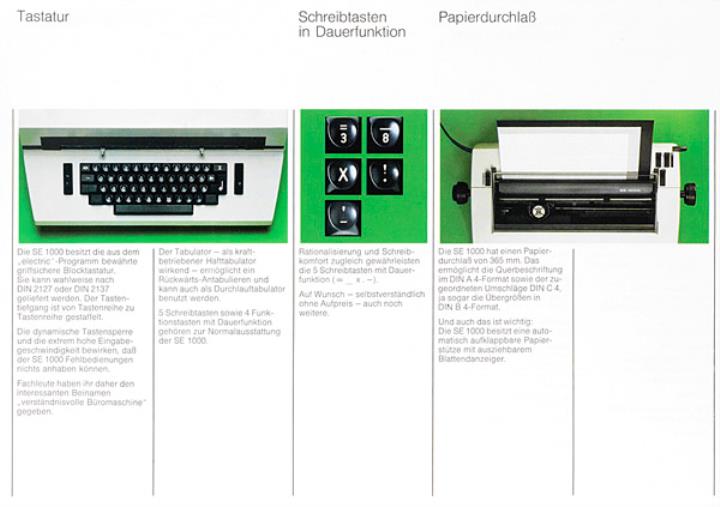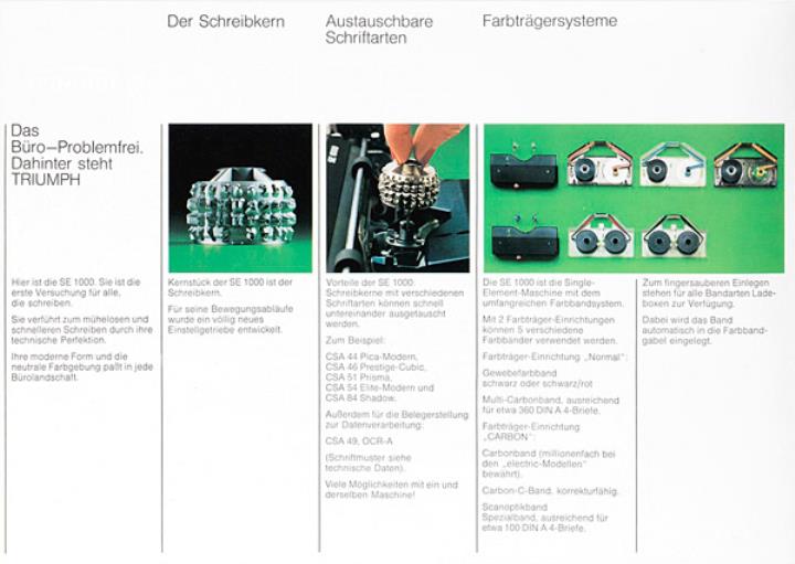 Faltprospekt für elektrische Schreibmaschine Triumph SE 1000 Nr. 3001/277/20./40