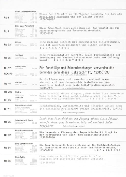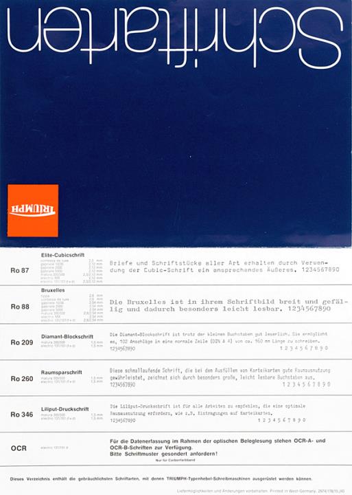 Schriftartenverzeichnis für Schreibmaschine Triumph Nr. 2974/178/15./40