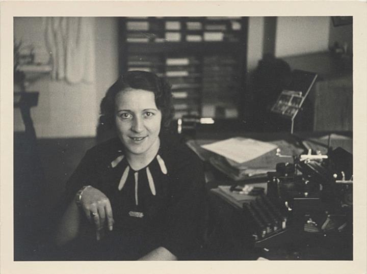 Fotografie, monochrom Sekretärin in einem Büro mit Schreibmaschine