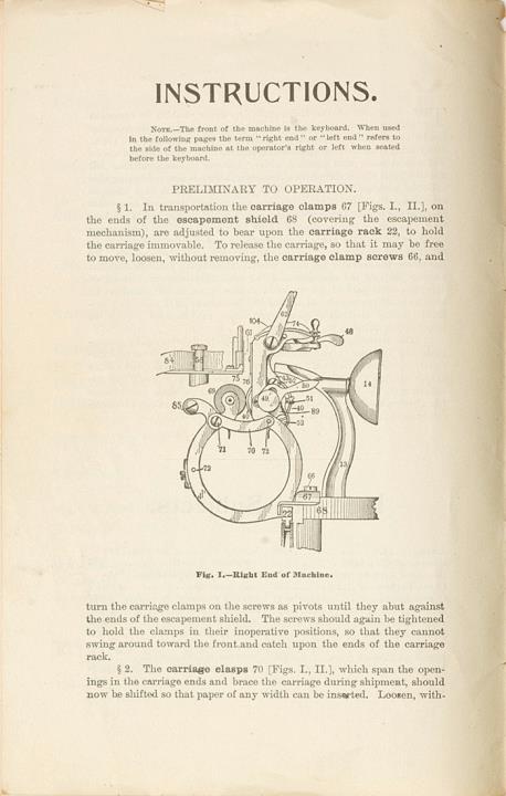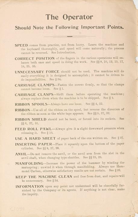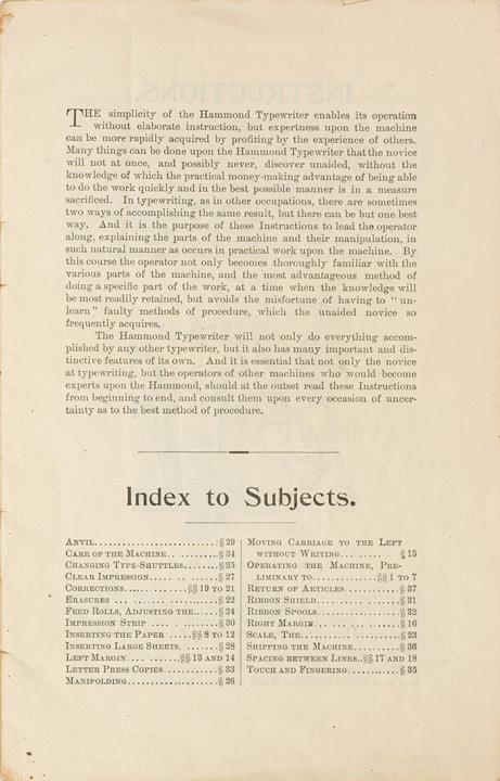 Bedienungsanleitung für Schreibmaschine Hammond mit Preisliste für Schreibmaschinen und Zubehör (datiert 01.01.1894)