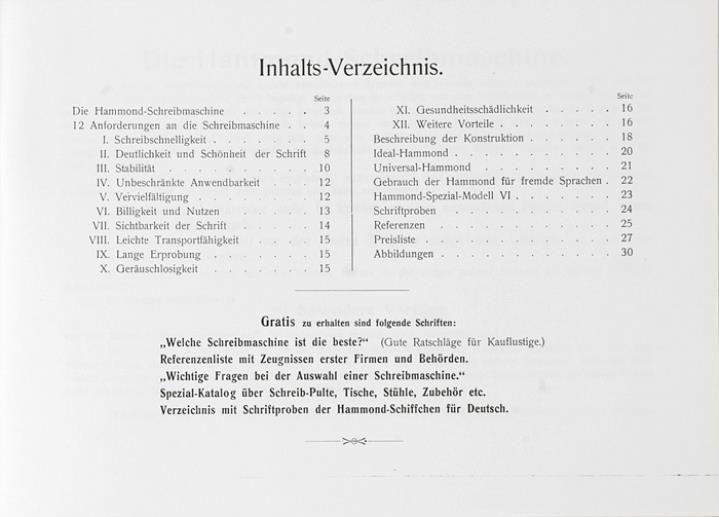 Prospekt für Schreibmaschine Hammond Modell Ideal und Universal Nachdruck mit Preisliste für Schreibmaschine und Zubehör