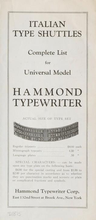 Italian Type Shuttles Complete List for Universal Model Hammond Typewriter