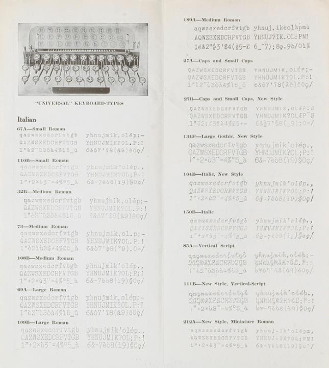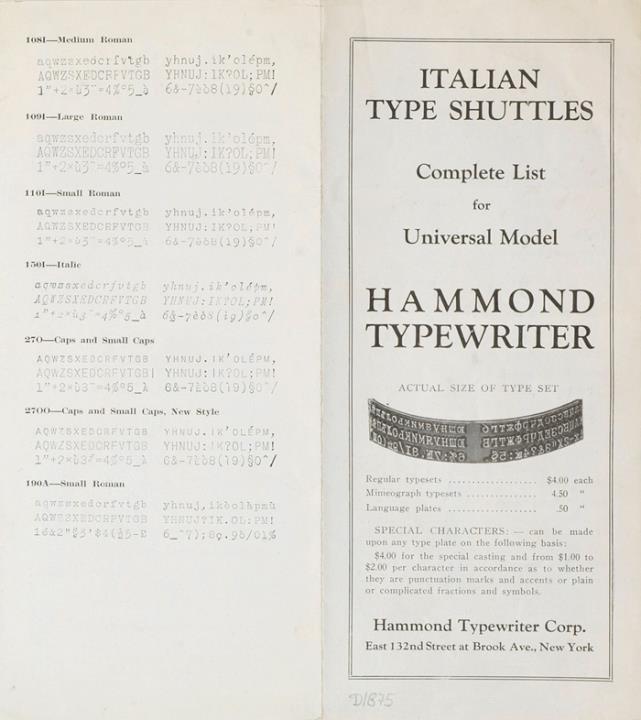 Faltprospekt zu Typenschiffchen/Schriftarten für Schreibmaschine Hammond