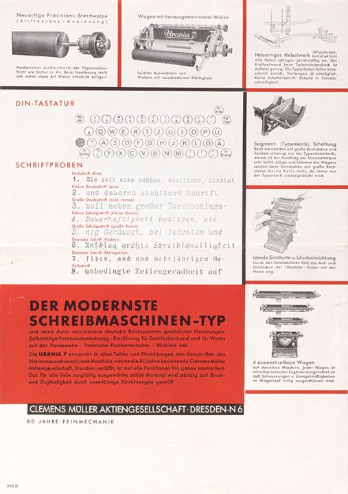 Prospekt für Schreibmaschine Urania 7 Nr. 345 D