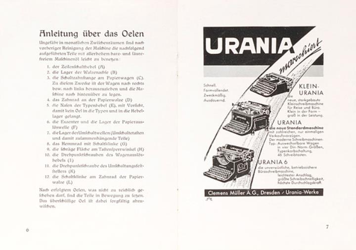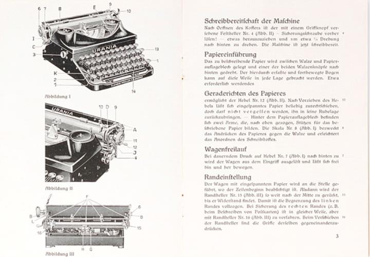 Gebrauchs-Anweisung für die Klein-Urania Schreibmaschine