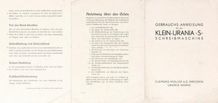 Gebrauchs-Anweisung für die Klein-Urania "S" Schreibmaschine