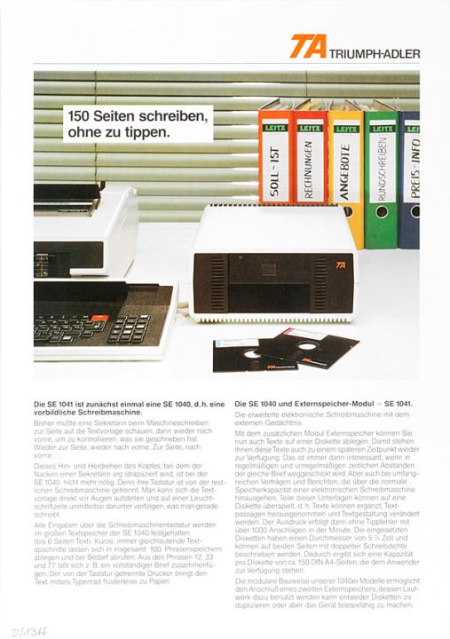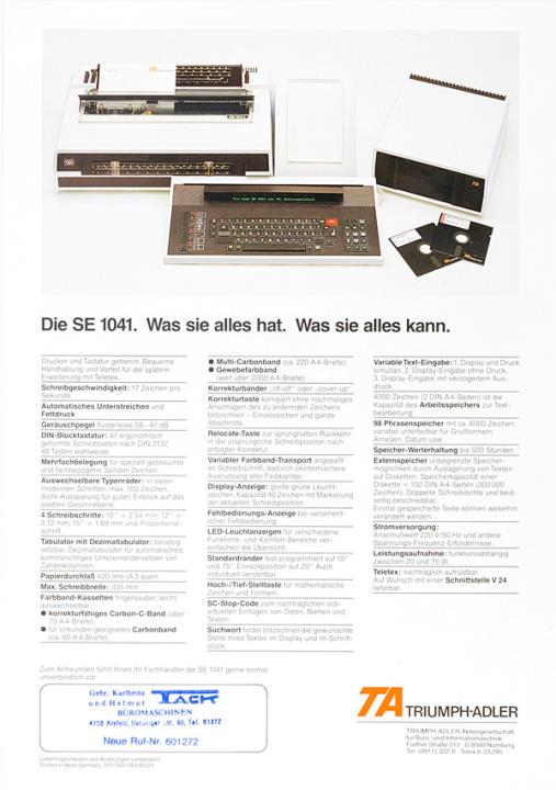 Prospekt für Schreibmaschine Triumph-Adler SE 1041 Nr. 01117801/383/60/23