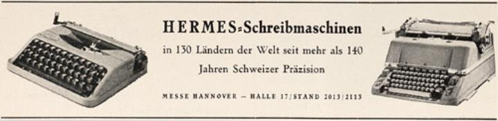 Werbeanzeige für Schreibmaschine Hermes monochrom
